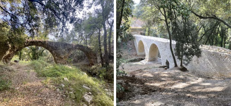 À gauche, Aqueduc de la Bouillide avant réhabilitation / À droite, Aqueduc de la Bouillide après réhabilitation © DR